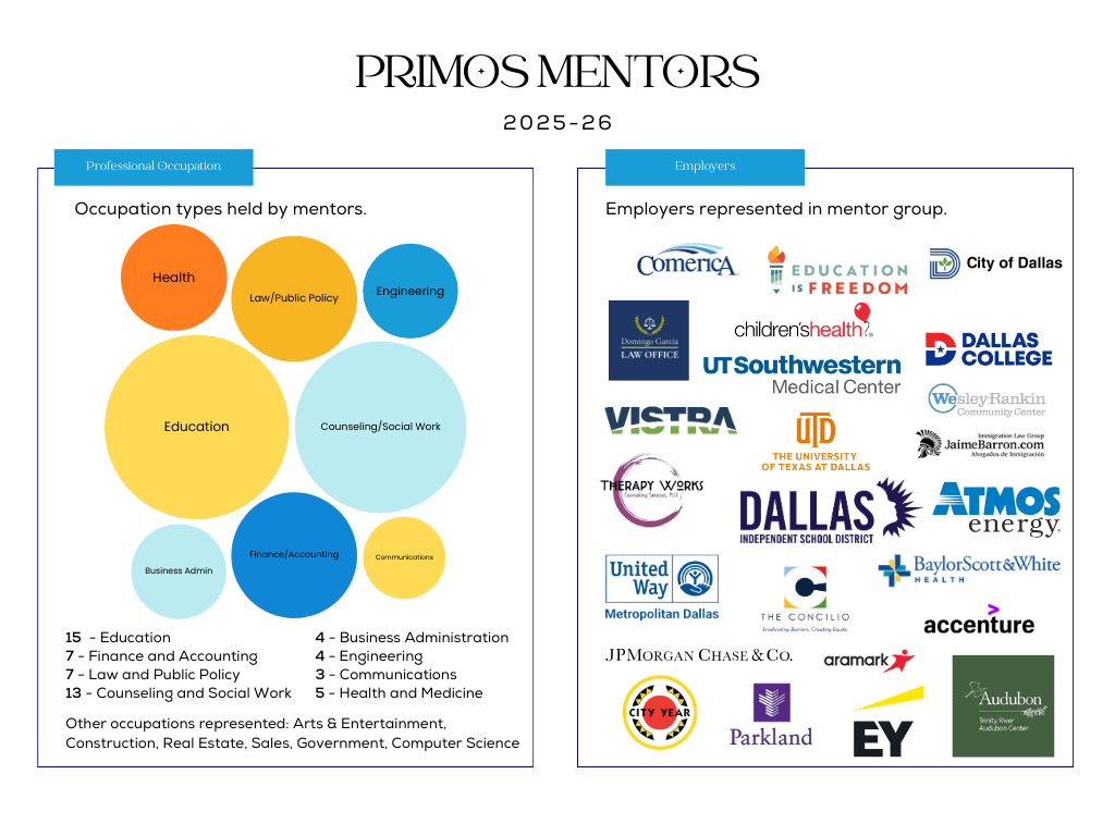 Primos are passionate about sharing their knowledge and skills with their mentees. They understand firsthand the difficulties of navigating their educational journey while balancing personal and family responsibilities.